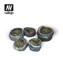 Four dry tree stumps of a variety of European trees, with detailed bark texture and interior. Ideal to place on dioramas, choosing the tones to depict wet or dry environments, even adding tufts or moss from Vallejo Scenery references.