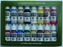 Set of 16 Model Color references for painting models, figures and dioramas. Containing bottles of 17 ml/0.57 fl oz (with eyedropper) and a color chart.