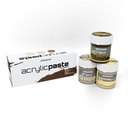 Pack of 3 neutral acrylic pastes in 100 ml containers. You can find different acrylic textures to make terrains from a very smooth to rough final finish. You can add as many layers as you want to obtain the desired effect and mix them fresh with both acrylic paint and pigments. They are easily applied with a brush or spatula, and can be diluted with water. Once dry you can add any type of paint.