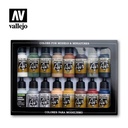 Set of 16 Model Color references for painting models, figures and dioramas. Containing bottles of 17 ml/0.57 fl oz (with eyedropper) and a color chart.