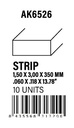 STYRENE STRIP - Strips 1.50 x 2.00 x 350mm
